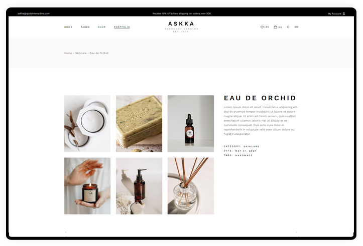 Create a website that personifies the long-lasting tradition of making candles & soap by hand. This is Askka.